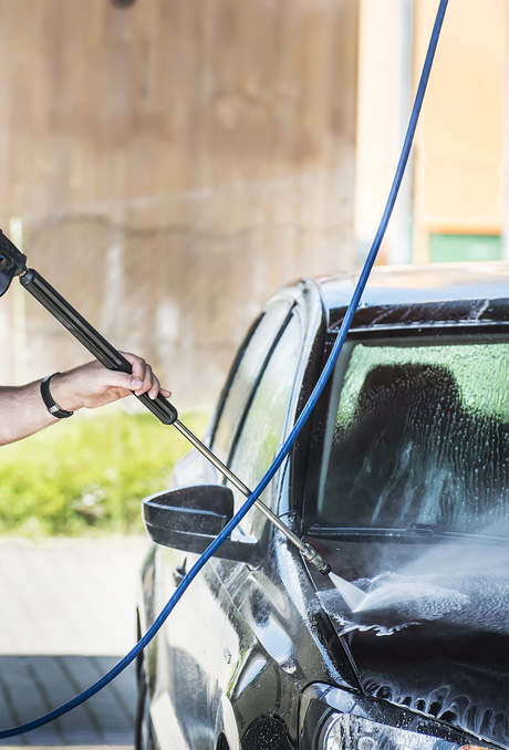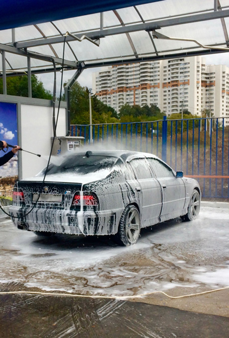 - эффективно вымыть транспортное средство, применяя профессиональные жидкости и специализированное оборудование, подающее воду под высоким давлением;